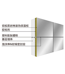 铝板装饰节能一体化系统是由铝板岩棉装饰节能复合板、固定连接材料和嵌缝密封材料组成,系统采用粘锚结合式或龙骨干挂式的安装方式进行施工安装。