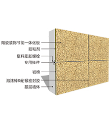 薄型陶瓷装饰节能一体化系统是由陶瓷装饰节能复合板、固定连接材料和嵌缝密封材料组成,系统采用粘锚结合式的安装方式进行施工安装