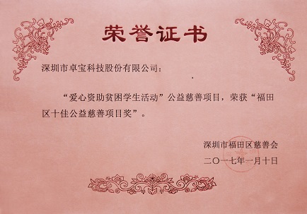 卓宝集团双头村爱心助学获评“福田优秀公益慈善项目”