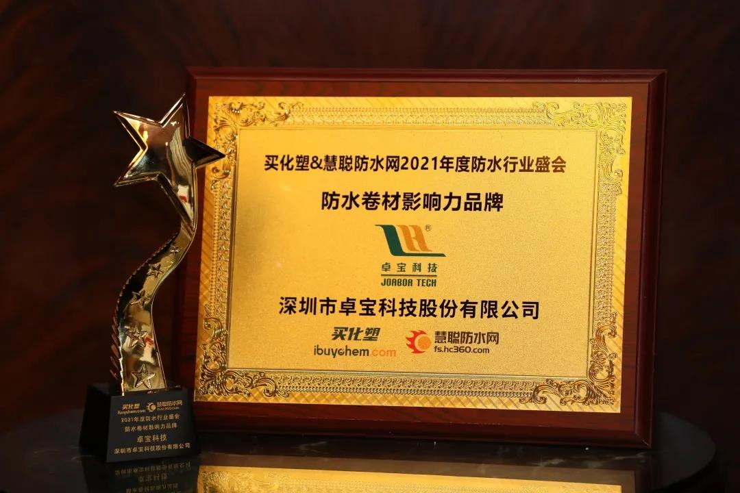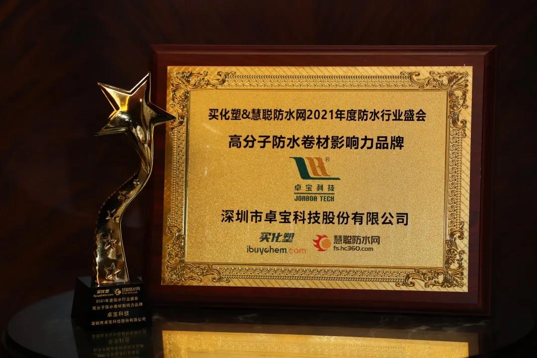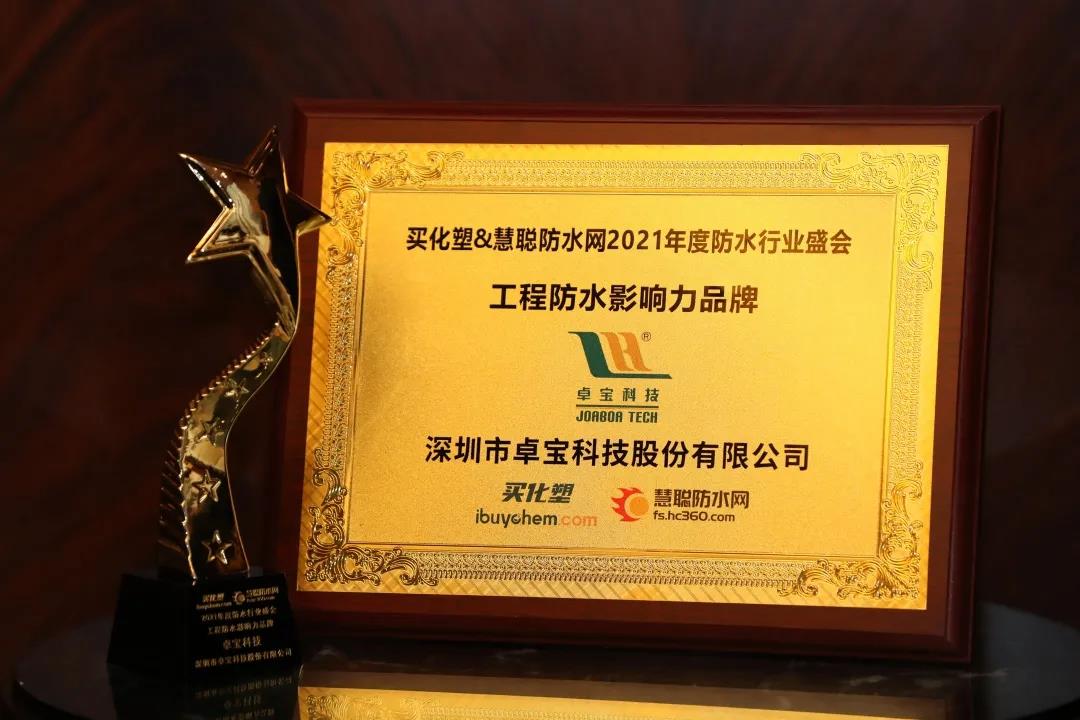 作为防水领域卓越的品牌典范,行业领先的功能性建筑材料系统服务商,卓宝深耕行业二十载,始终坚持创新驱动,坚持高质量、可持续、品牌化发展,本次获奖再次彰显了卓宝在防水领域的品牌影响力。