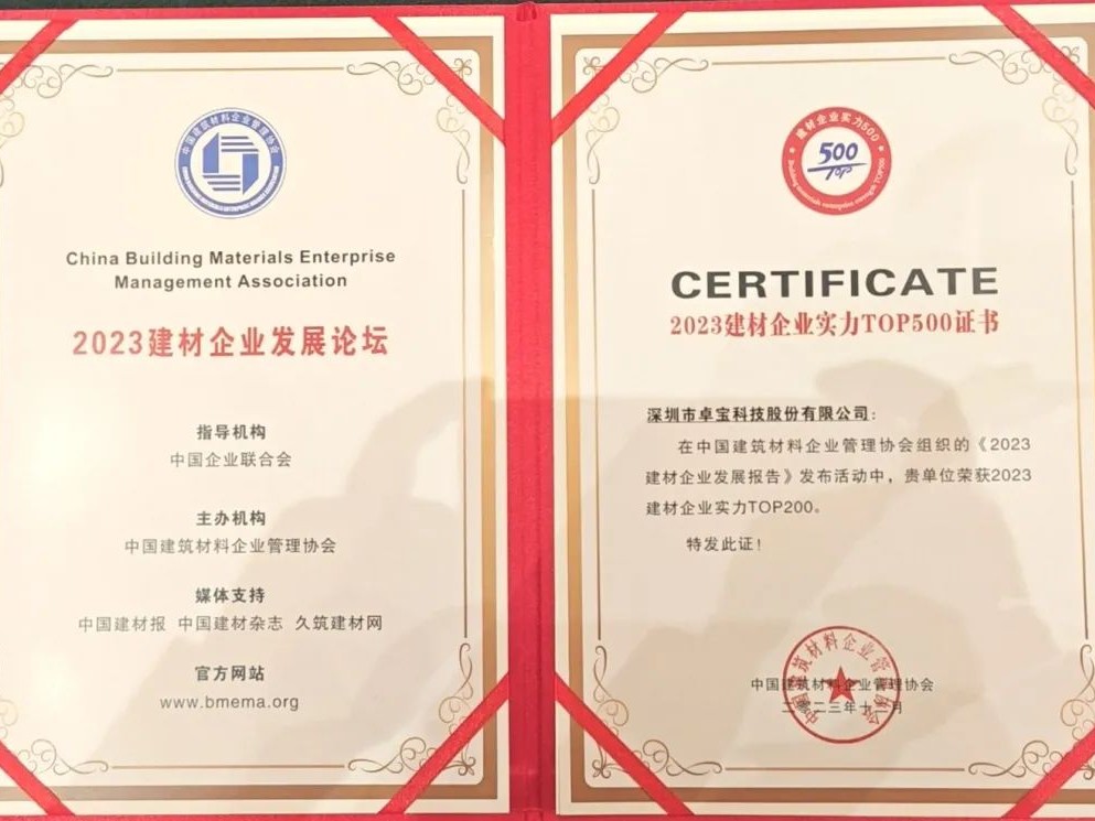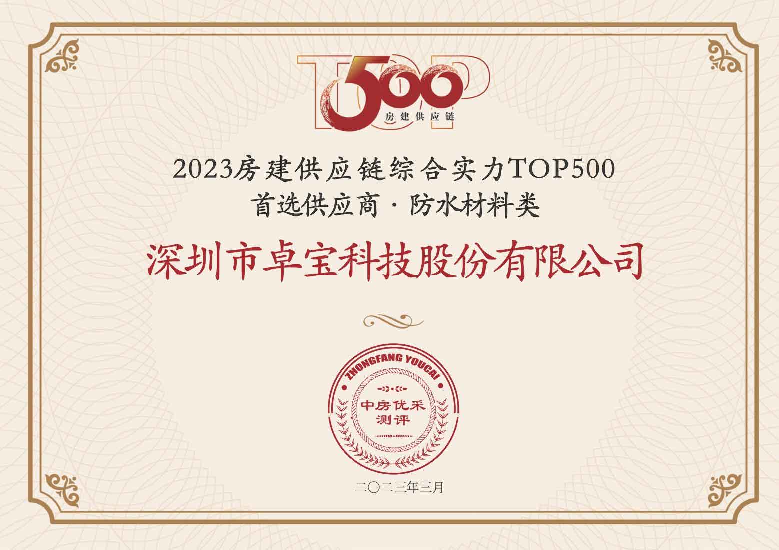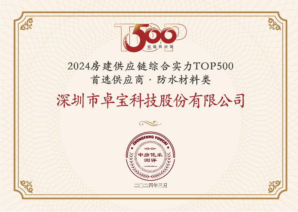 3月16日,2021中国房地产TOP500测评成果发布会暨房地产高峰论坛在上海中心花园礼堂盛大召开,《2021中国房地产开发企业综合实力TOP500首选供应商测评研究报告》在会上重磅揭晓。卓宝科技一举拿下2项大奖:2021中国房地产开发企业综合实力TOP500房企防水材料类、涂料装饰保温一体化板类首选供应商品牌。