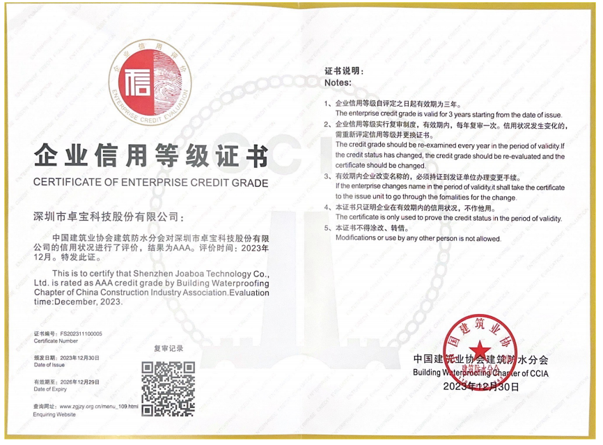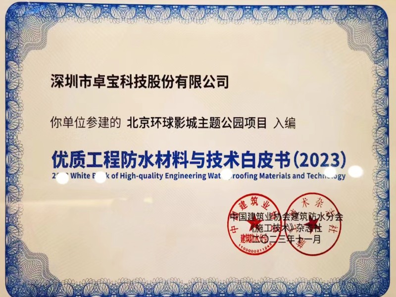 1月9日,深圳防水行业2020工作总结大会暨一届五次会员大会在深圳以线上视频和线下会议的方式召开。会上宣读了表彰公告,卓宝科技荣获2020深圳防水行业先进集体称号。