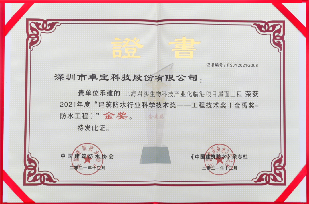 7月17日,由中国建筑防水协会、深圳市防水行业协会共同举办的2021第七届中国建筑防水(南方)专家论坛在深圳举行,卓宝受邀出席此次论坛。会上对获奖团体和个人进行了表彰,卓宝凭借在建筑防水行业做出的特别贡献荣获“2021年中国建筑防水(南方)专家论坛团体贡献奖”,卓宝副总裁林旭涛先生、工程技术总监谭武凭借论文《屋面防水保温一体化解决方案的研究》荣获了优秀论文证书!