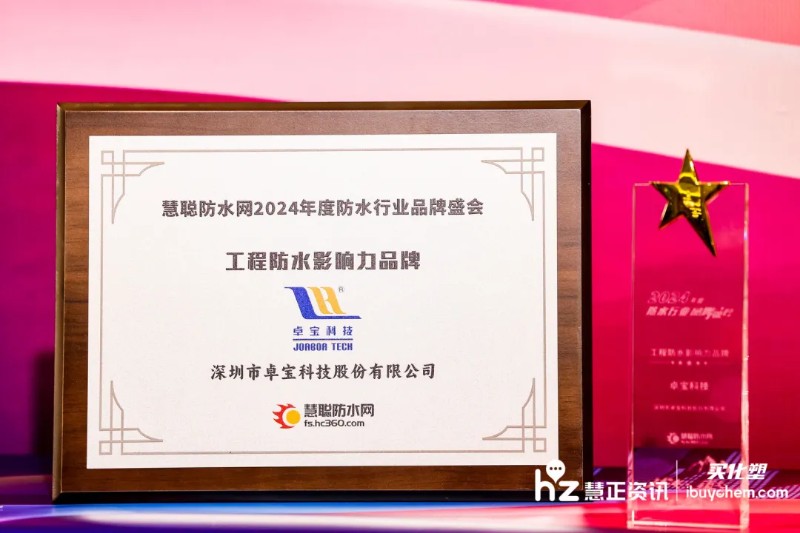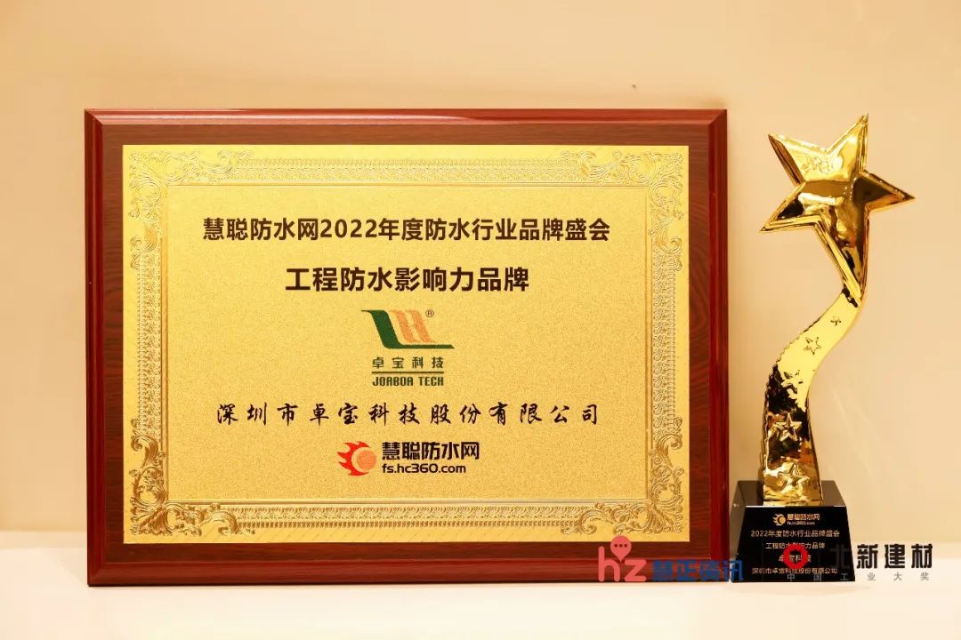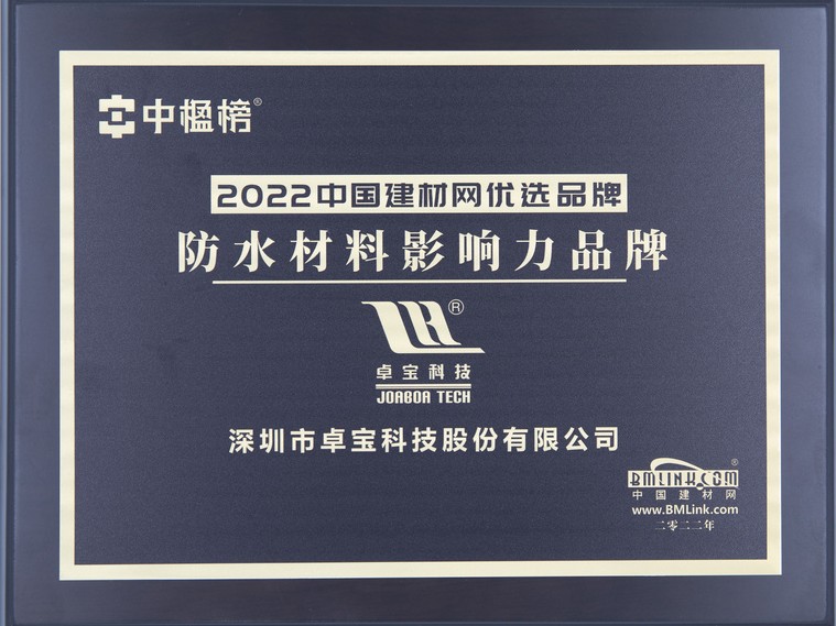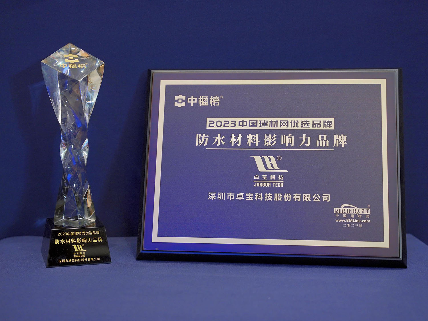 3月25日下午,由中国建博会(上海)和中国建材网联合主办的“第五届中国建材行业高峰论坛暨【中楹榜】2021建材网优选品牌计划颁奖典礼”在上海盛大举行,各大行业榜单荣耀诞生,标杆品牌备受瞩目,卓宝科技荣膺“2021中国建材网优选品牌防水材料影响力品牌”。