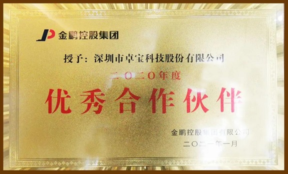 开春忙,喜事连连传捷报!日前,卓宝科技又收获了一项荣誉——来自金鹏控股集团颁发的“2020年度优秀合作伙伴”奖项。金鹏控股集团始创于1993年,历经二十多年的沉淀与发展