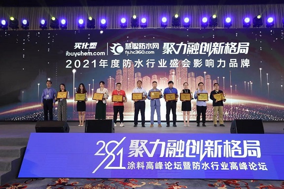 2021年6月25-26日,以“聚力融创新格局”为主题的买化塑涂料行业盛会&防水行业盛会——2021涂料高峰论坛暨防水行业高峰论坛在北京国贸大酒店召开。活动举行了规模盛大的影响力品牌颁奖活动,对过往一年中具有突出表现的优秀企业进行表彰,卓宝一举斩获了4项大奖:“工程防水影响力品牌”、“防水卷材影响力品牌”、“高分子防水卷材影响力品牌”,旗下品牌涂无忧荣获“防水涂料影响力品牌”。