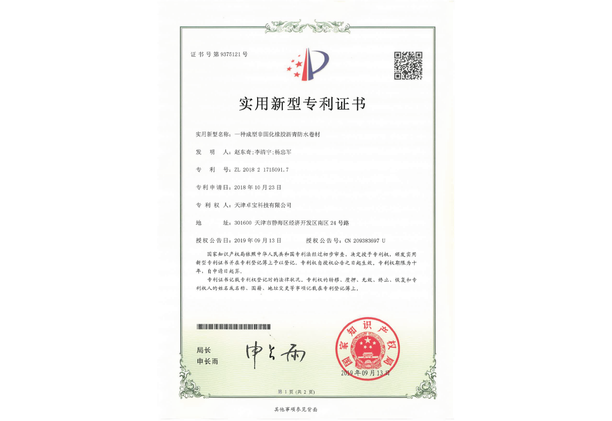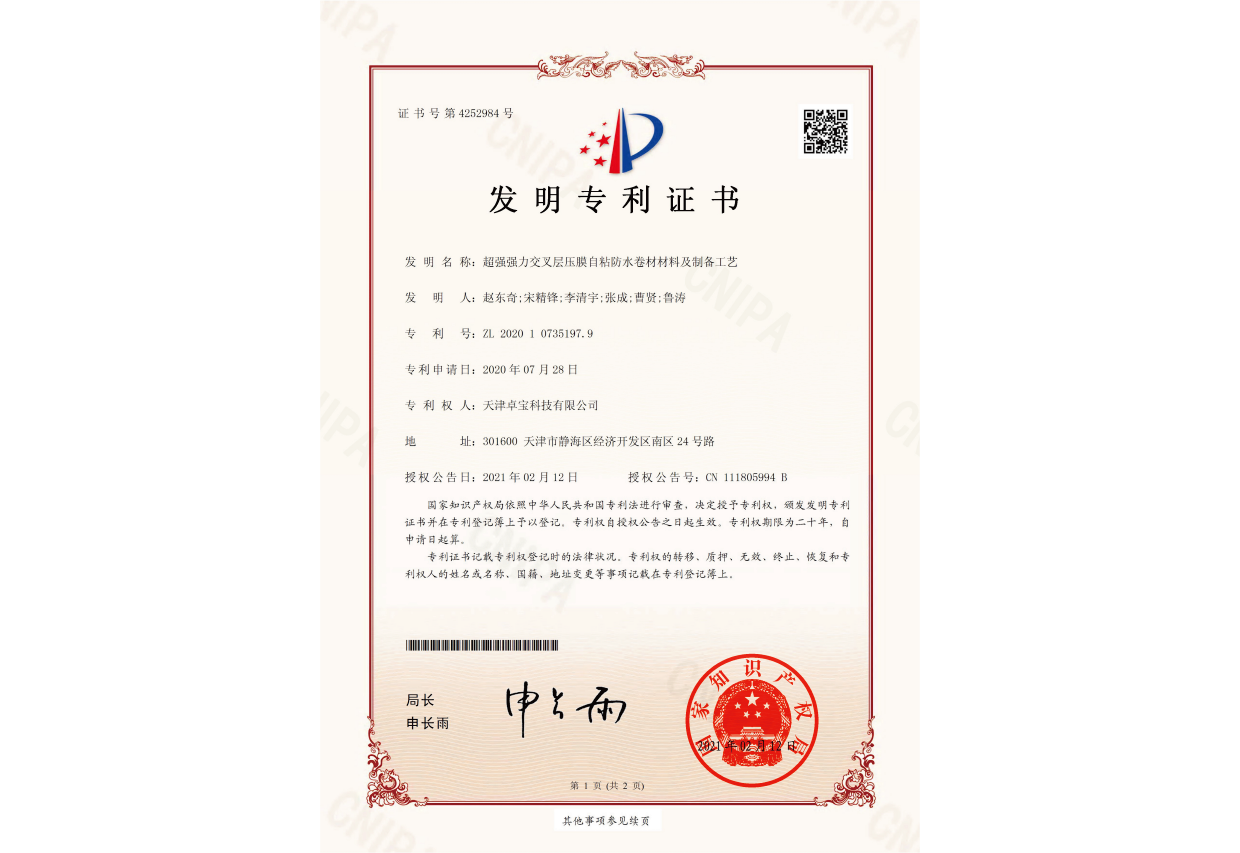 国家重点新产品-贴必定自粘防水卷材